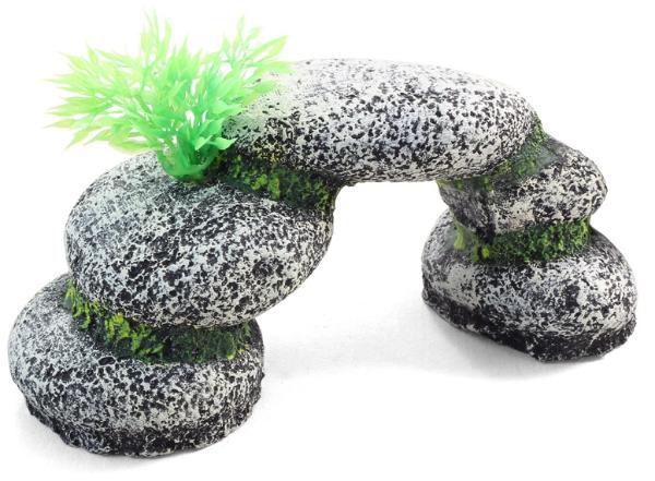 Такой грот-арка может быть использован как самостоятельный элемент декора - для оформления небольшого аквариума, так и в комплекте с другими гротами, объемными фонами и искусственными растениями - для оформления аквариума большого объема.